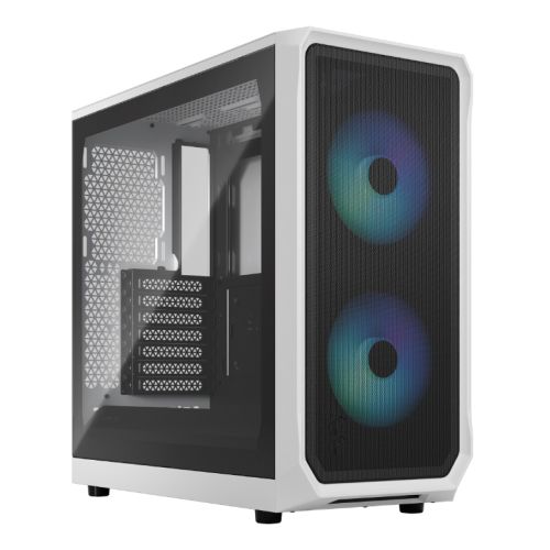 Fractal Design Focus 2 RGB (White TG) Gaming Case w/ Clear Glass Window, ATX, 2 RGB Fans, RGB controller, Mesh Front, Innovative Shroud System
